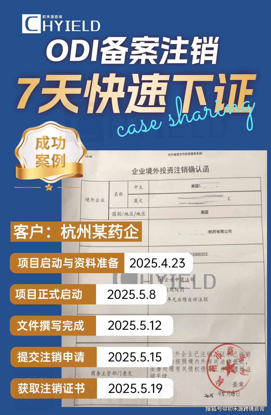 成功案例丨杭州医药公司ODI备案注销7天极速获批!